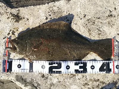 | 強風の中1投目でいきなりヒットしました。 | 根がかりポイントで底をとらずにフォールをさせていたら来ました。一瞬、根がかりかと思いました。 | |||