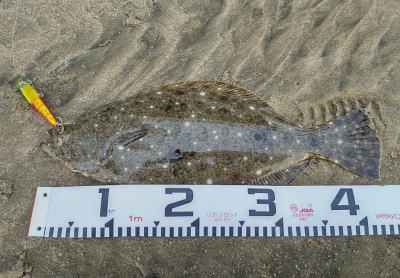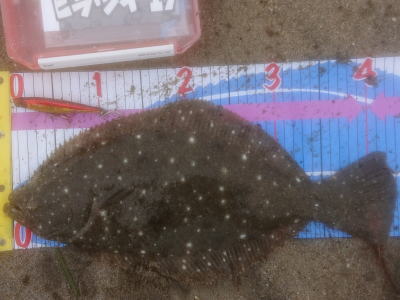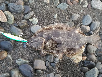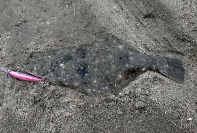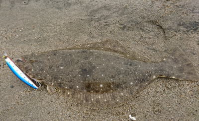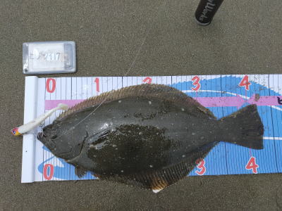 | ヨブのカケサガリで四枚目追加 | ヨブのカケサガリで五枚目のヒラメを追加。ソゲも2枚キャッチして計7キャッチでした。 | |||