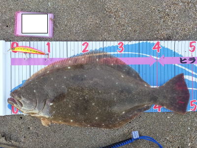 | 久々にヒラメサイズが釣れました〜。ちょっと小さいけどね〜 狙って釣った魚は本当に嬉しいです |