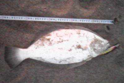 | 久々の報告で、このサイズが報告できてうれしいです。 | 真昼間、自分ひとりだけの貸切サーフでゲット♪ | |||