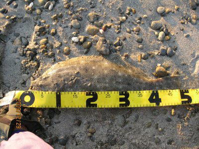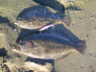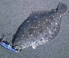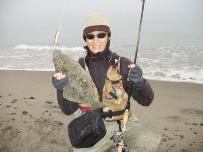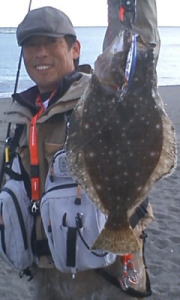 | これが今年最後のヒラメだと思いましたが20分後に、もう一枚追加しました。 | 今年最後のヒラメです。 | |||