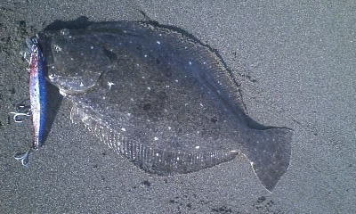 | 初のヒラメサイズなので初投稿しました。 | いろいろなルアーを投げましたが釣れた2枚は同じルアーでした。 | |||