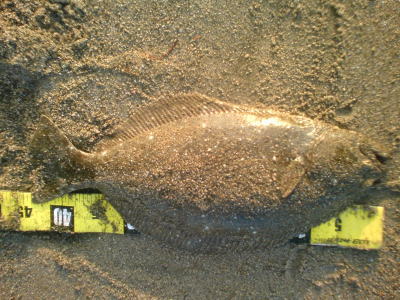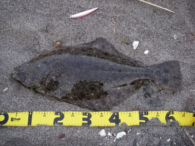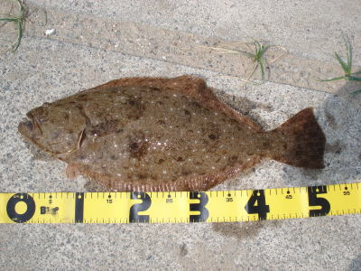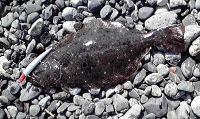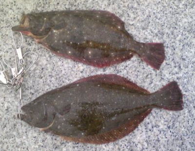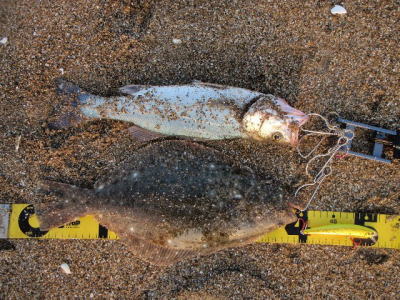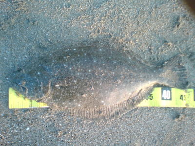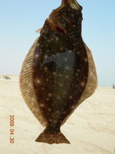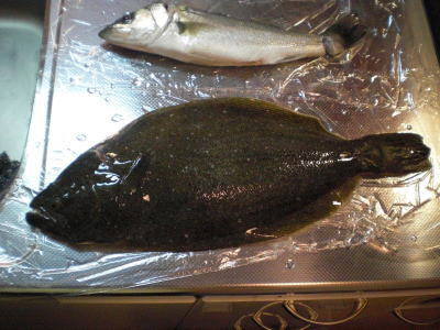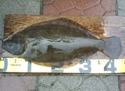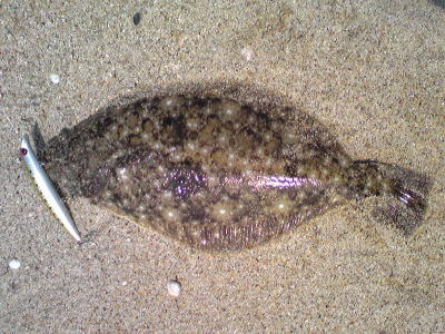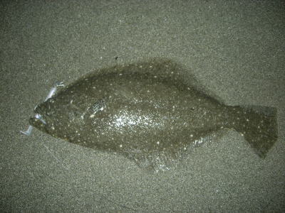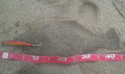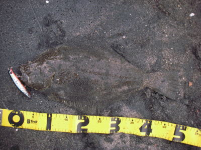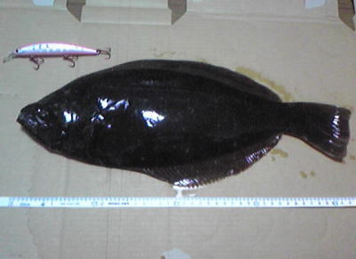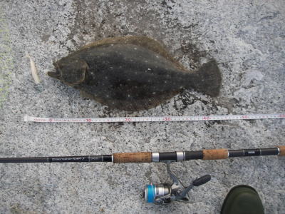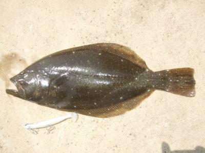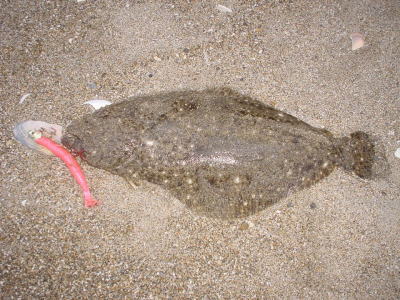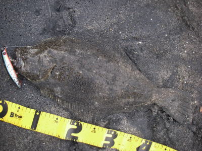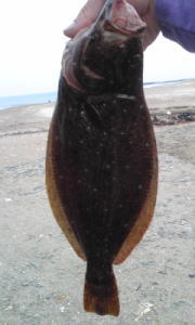 | 開始して2キャスト目で来ました。 | 今年の初ヒラメです。 | |||