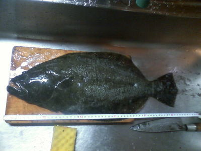 | 1バラシ、1ゲット、1小ソゲゲット 写真撮ってくれた方ありがとうございます。今年初ヒラメです。 | 初ひらめありがとう。サイズ41センチでした。 | |||