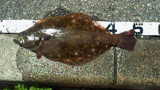 | 朝ダメで夕方リベンジ出来ました。just40cmです。 | やっと今年最初のヒラメサイズが出ました。次は、座布団サイズを釣りたいなぁ〜。 | |||