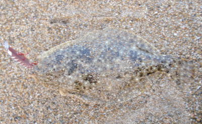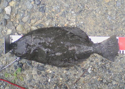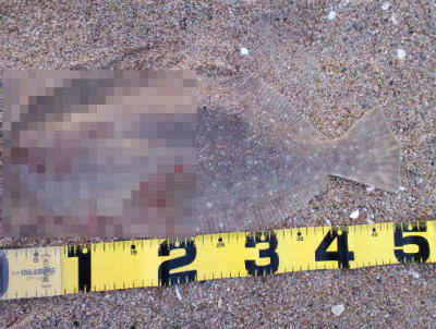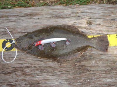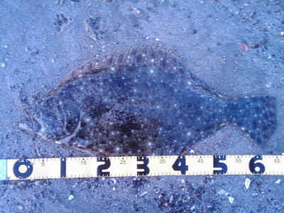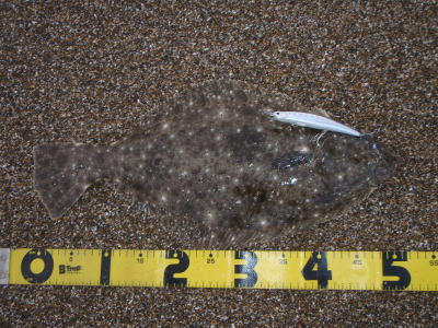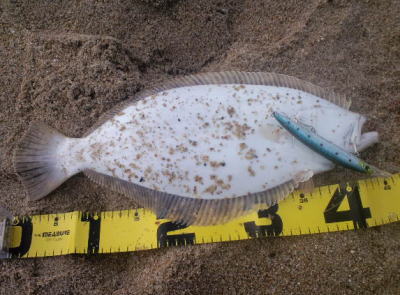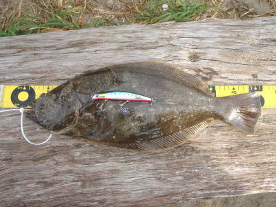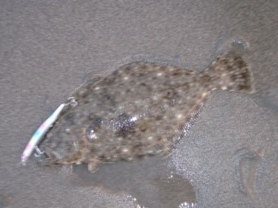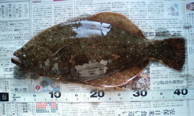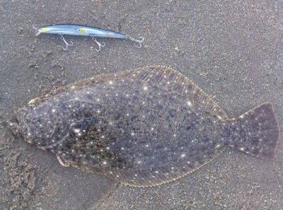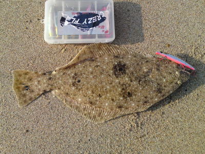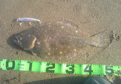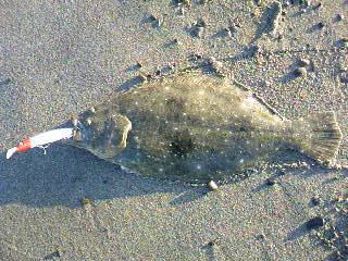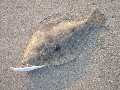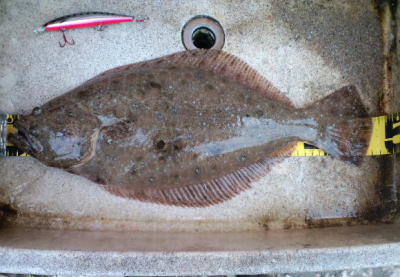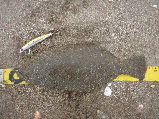 | 初めてのヒラメサイズです。 | 台風の2日後でしたが少しの濁りでした | |||
