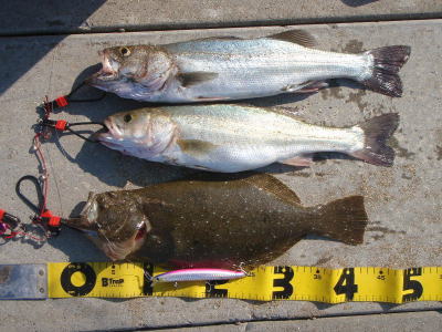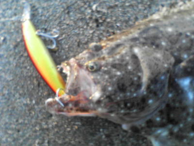 | 仕事前の1時間!楽しい釣りが出来ました。 | 肉厚のヒラメでした♪ | |||