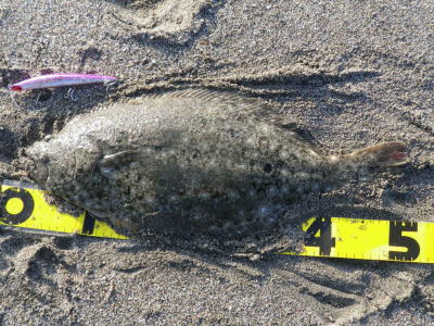 | 初ゲット | ヒラメがジャンプしていたので興奮しながら投げていたら運良くHit! | |||