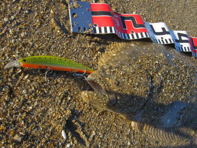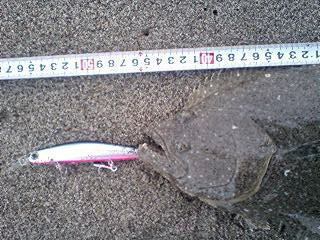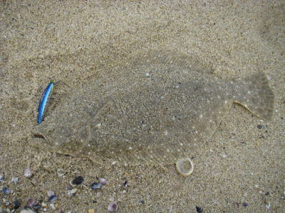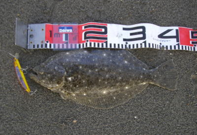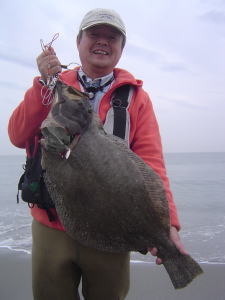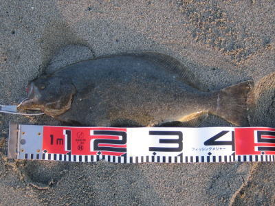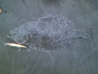 | 苦戦が続いた今秋の第一号です。アングラーもサーファーも誰一人いないサーフで、ひっそりとあげました。 | 7月以来のヒラメです! | |||