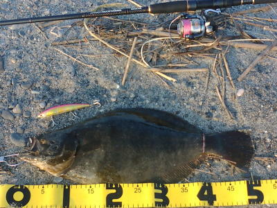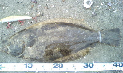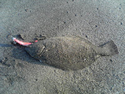 | 久々でヒラメを狙ったら当たりました。 | 前日と同じ場所を攻めると結果がでました。 | |||