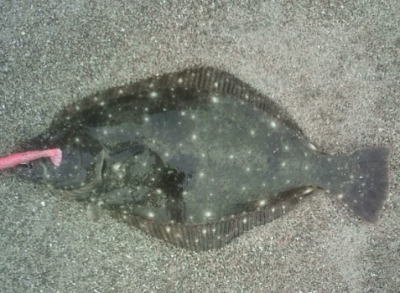 | この約10分前にソゲ(リリース)が釣れ、この約10分後にヒラメサイズをバラしました。 | 小移動して、1枚目と同じ場所に戻ってきて1投目でした。 | |||