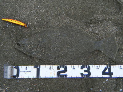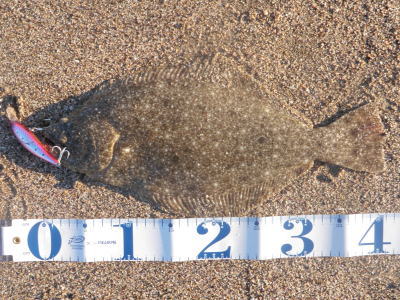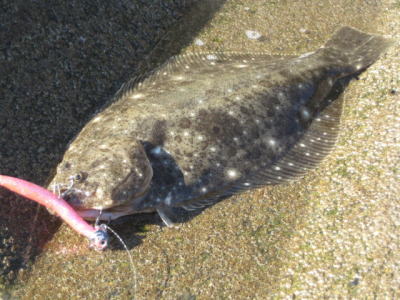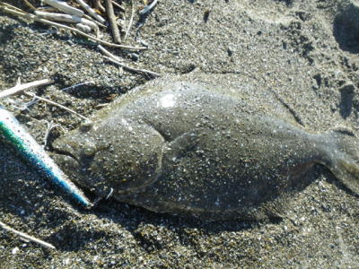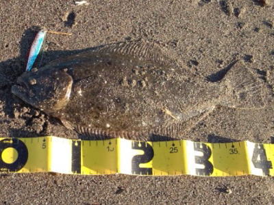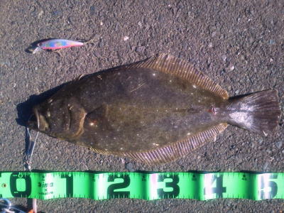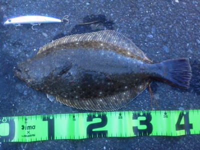 | 今シーズン初ヒラメでした。 | もうだめそうかなと思って帰りながらルアーを投げていたらきました。二日連続ヒットで嬉しかったです。 | |||