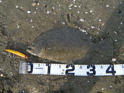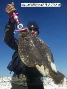 | やっとヒラメサイズ、でました。それも神様堀田様の前で釣りました。 | - | |||