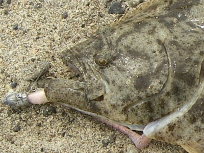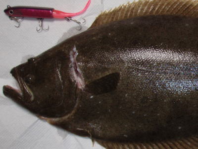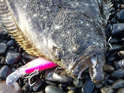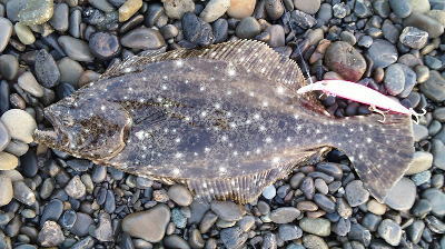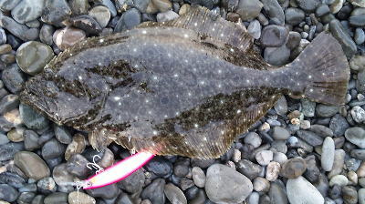 | 2ヶ月振りにヒラメサイズが釣れました。 | 前日、ソゲキングが、釣れた所で釣れました。 | |||