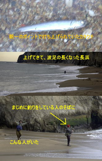 | 平成14年12月30日 昼間は惨敗だったため、夜、勝浦港にアジ釣りに行った。今日もなぜかハリは大きめ、ムツバリ9号。それに、4Bのガン玉2個&パワーシラスのクリアゴールドラメ。 前回と同じ常夜灯の下で、ファーストキャストをする。そして、前回と同じようにカウントダウン。1,2,3,4。リトリーブ開始。と、その直後に『ブルブル』っとバイト。『ギュィーン』ともっていくアジ特有のアタリです。 『今日こそは、、、』 と思った直後に、バラシ。その後、数時間、2ヒット2バラシ。 これで、アジング(アジのワーミング)、7ヒット7バラシ、、、次回こそは、もっと小さなハリで挑んでやろうと思うのであった!