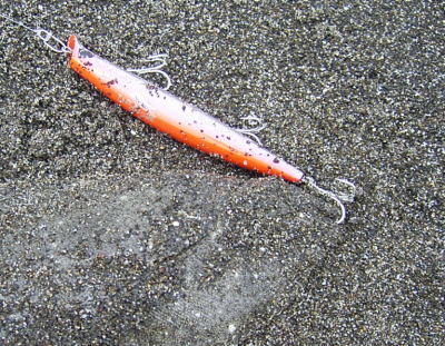 見た感じ水深2mほどなので、ヒラメミノーの125Sをセットして釣り開始。ただ、目標物が無いので、坦々と少しずつポイントをずらしてキャストする。