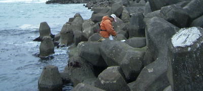 その後、2時間近く粘り、結局このポイントではマロさんがアジ3匹&2バラシ(内1匹は、ネットの網をすり抜けてポチャン)。