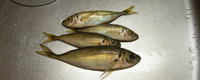 上3匹が大会時間内の、下の1匹が大会終了後のアジ |