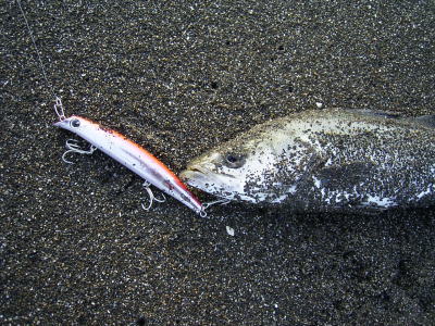 その頃には、潮もいい感じで引いていて、予定通りヘビーサーファーを付けて、沖の馬の背を縦流れを中心に両サイドを攻める。スローリトリーブで、ファーストリトリーブで、リトリーブ&フォールで・・・ ┐(´〜`;)┌ |