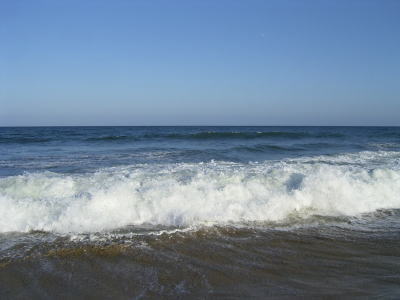 何か、一瞬目の端に波が光ったように見えた。で、しばらく行くと、大きめの波がブレイクして、白波全体がコバルトブルーに輝いた。