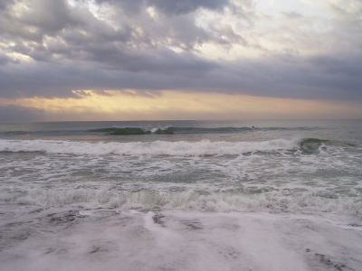 朝5時、駐車場に着くと、茨城・ヒロさんの車発見。チラっと覗くと、まだ寝てる雰囲気がする。起こすのは気が引けるし、どうせ時間になったら起きてくんだろ。と思い、薄っすらと明るくなってきた頃、サーフに立った。