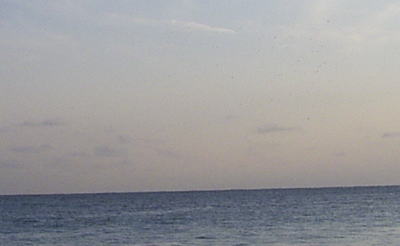 写真中央にポチっと見えるのがサーファー。波のブレイクは遠いのよ。 |