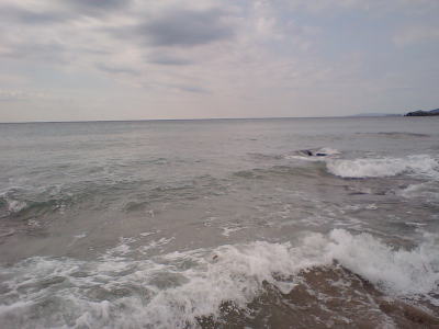 微妙な沖への流れ |