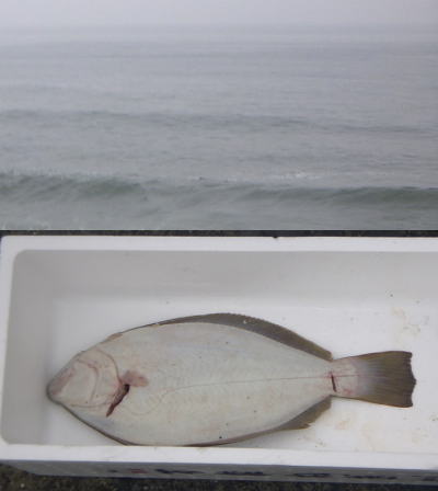 という思いから、元の場所に戻り、先ほどと同じような位置へのキャストを繰り返す。と、ちょっとしたころ、また先ほどのような『モゾモゾ』とした重さがのってきた。またまた大きくアワセを入れると、またまたヒラメの感触。