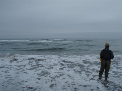 さて、目的のポントに到着。先行者は、3名。ポイントは、全体的に横ヨブで、それが沖に1つ、小さな馬の背があって手前に1つ。そしてその横ヨブが、若干の高低差をもっていくつかに分かれてる・・・ってな感じ???