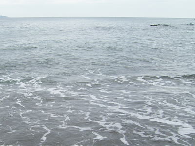 そして、前日、ちょっと離岸流っぽくなっていた場所に到着し(写真上から2枚目の場所)、波打ち際に立って海を見る。寄せて崩れて帰っていく波を見る。