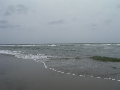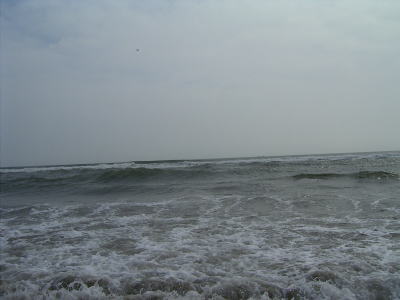 と、久々の茨城の海に心が躍る。ワクワクです。 (^^) しか〜し、そのワクワク味わっているとき、膝上まで水が押し寄せてきて、その瞬間『っっつー』っと、左膝裏から浸水の感触 (;´Д`A