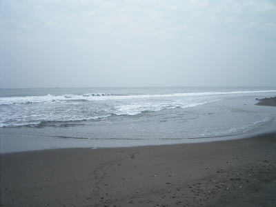 が、その先は進めど進めど超遠浅でかなり沖で波が崩れ、その白波が勢い衰えず『ざざ〜っん』と波打ち際へ。これではダメです。たとえヒラメがいたとしても、この超遠浅の状況では私のルアーにかかってはくれないでしょう。