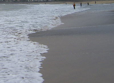 久々に立派な離岸流を見ましたワイ。ま、人気ポイントなので、こんな遅い時間じゃ攻めに責めまくられた後なんでしょうけどね。