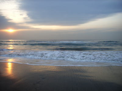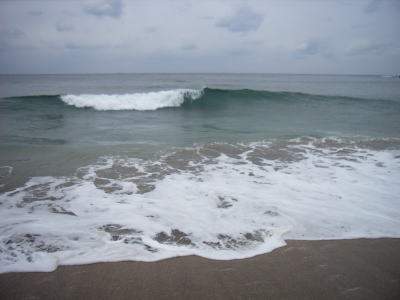 で、正面へ。波打ち際で観察してると、波打ち際の波のブレイクの奥がカケアガリになっていてちょっと深くなっている感じ。波の高さ、パワーも、水の色だって程よくて底荒れもしない良い状態。