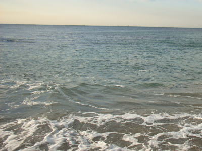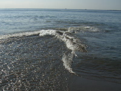 遠くから波のスジ。ダラ〜ンとした海底なのね。 |