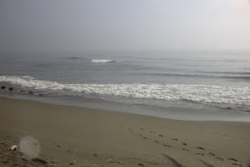 朝、サーフに立つと、予想以上の波のなさに驚く。