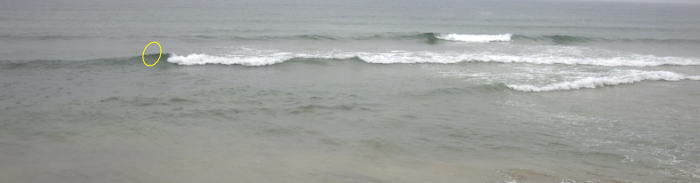 そして8時、ポイント移動、今度の場所は、水は程よく澄み、波も程よいポイント。ここでは、裂波 サバとタイドミノースリム120 クリアベイトを交互にセットして、サーフをラン&ガンする。いい場所は、サーファーがガシガシ入っちゃっているので、その他の小場所を狙って攻めていく。