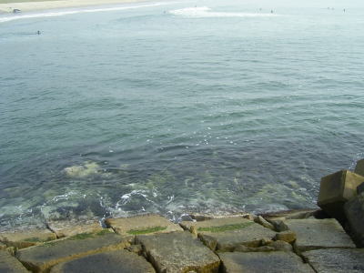 昼前、大久保さんのところによりサーフの状況を聞き、その場所を見てみた。潮位がかなり低いにもかかわらずしっかりとした深さがあり、沖にまで流れが伸びている。