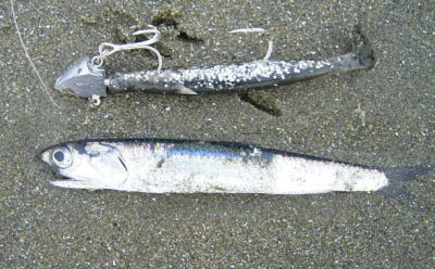 上げてみると、メタジと同じサイズのマゴチ。こいつは、なかなか美味いモノなので、頭を指で落として、『ペロン』・・・ウソです(^^)