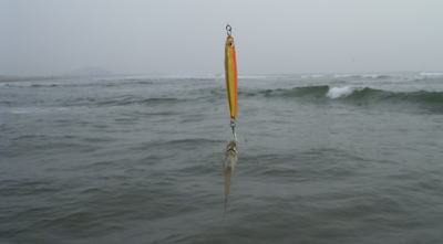 途中、鹿嶋方面に移動して、HLでお茶を濁し、やっぱり釣れないという事で、悩んだ挙句、波崎に戻ることにする。ヒロさんは、明日の釣行に備えて帰るため、ここでお別れして、GOMAさんと夕方の波崎を攻めることにしたのでした。