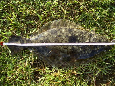 目測34cmほどだったのだが、ひらぼうさんが『39cmだな』というのでメジャーを当ててみると、ひらぼうさんのBINGO!ヒラメサイズにはちょっと届かないソゲでした。