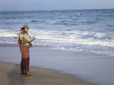 みな思い思いの場所に散って、思い思いのルアーで攻めています。私は、ヒラメミノースペシャル アルミカタクチ シンキングで。今日も、3キャスト3歩移動で、マジメにラン&ガンします。波打ち際のカケアガリが攻めるポイントのメインなので、カケアガリから離れること5m、ほとんど波足に触れることなく攻めて行きます。が、コツリともしません。一通り攻めて、攻めるポイントを大きく移動して、再び地道にラン&ガンしますが、やっぱりダメ。