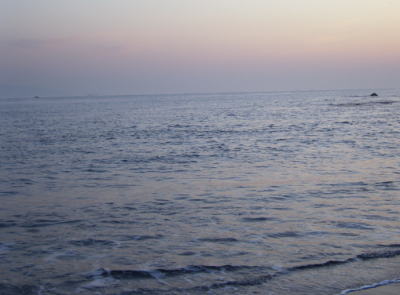 海も空も金色に染まってました |