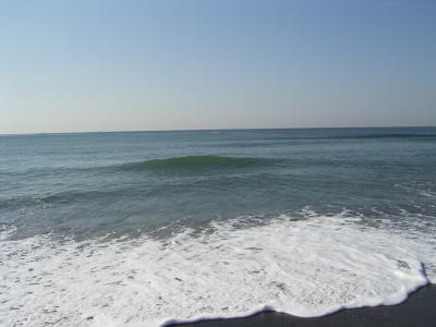 ということで、サーフへと向かう。そして移動して到着した海は、凪ぎ。時折、程よい波が崩れる程度のなかなかいい状況。