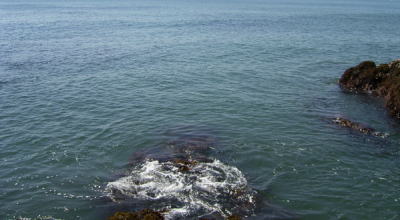 さらにラン&ガンを重ね、2つ目のポイントを発見。ここは、写真のように沖に馬の背、そのウマの背の真ん中が割れていて、そこから沖に向けて潮がゆる〜く流れているポイント。手前だけ見てると沖への流れに気づかない場合もあるので、沖の潮目(?)も要チェック!