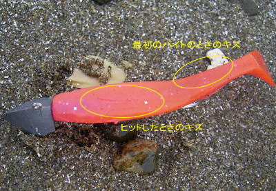 それでは、っちゅ〜ことで2匹目のドジョウを狙ってその離岸流を攻めさせてもらうことにした。攻めるのは、南側から、ゴトかん、ピアノマンさん、りょうさん、moyarinさん、そして私の5人。ほぼ均等に散らばり、思い思いのルアーで攻める。